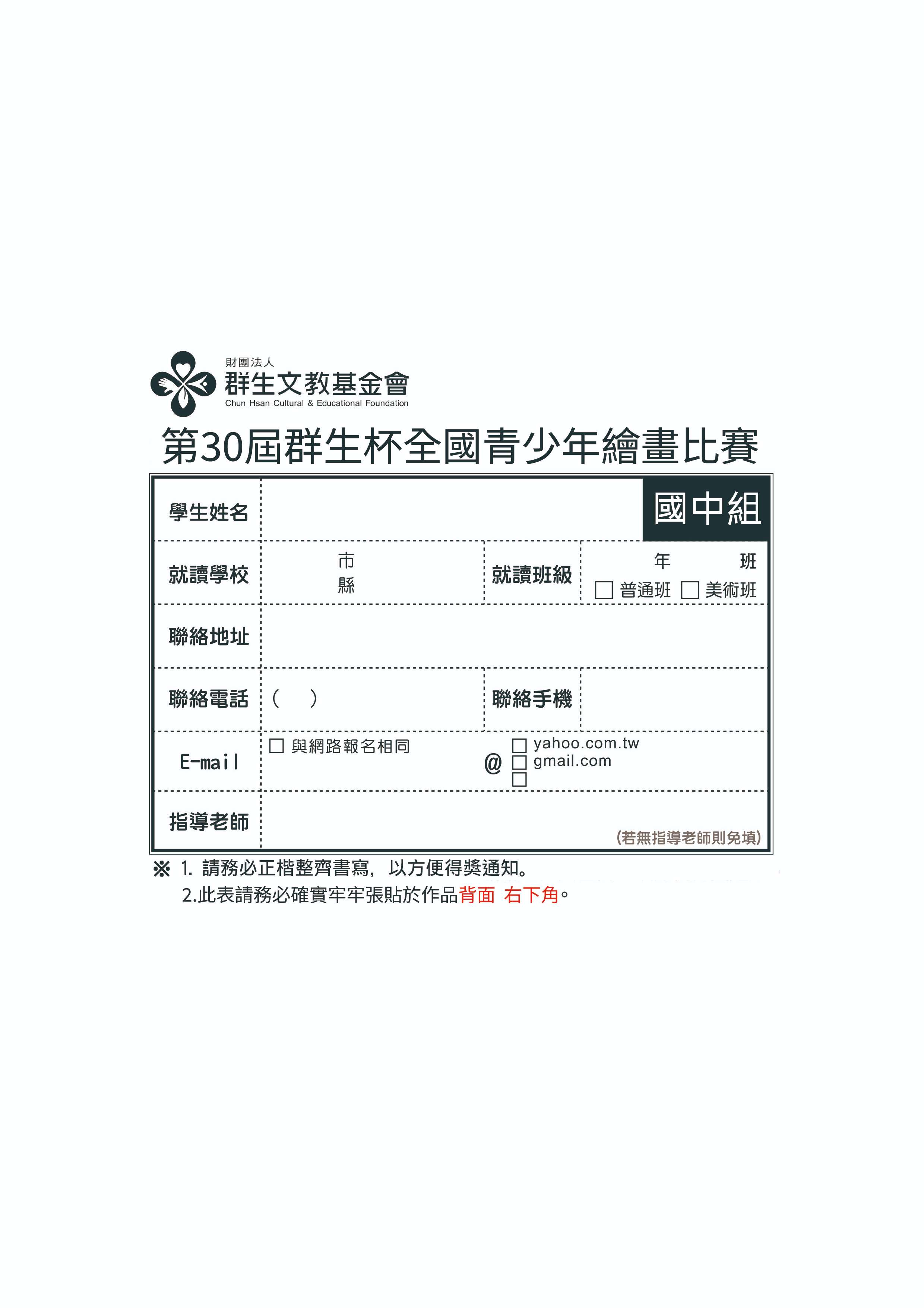 五、比賽簡章公告於群生基金會網站首頁https://ischool.fhvs.ntpc.edu.tw/ischool/publish_page/193/,敬請下載查閱。