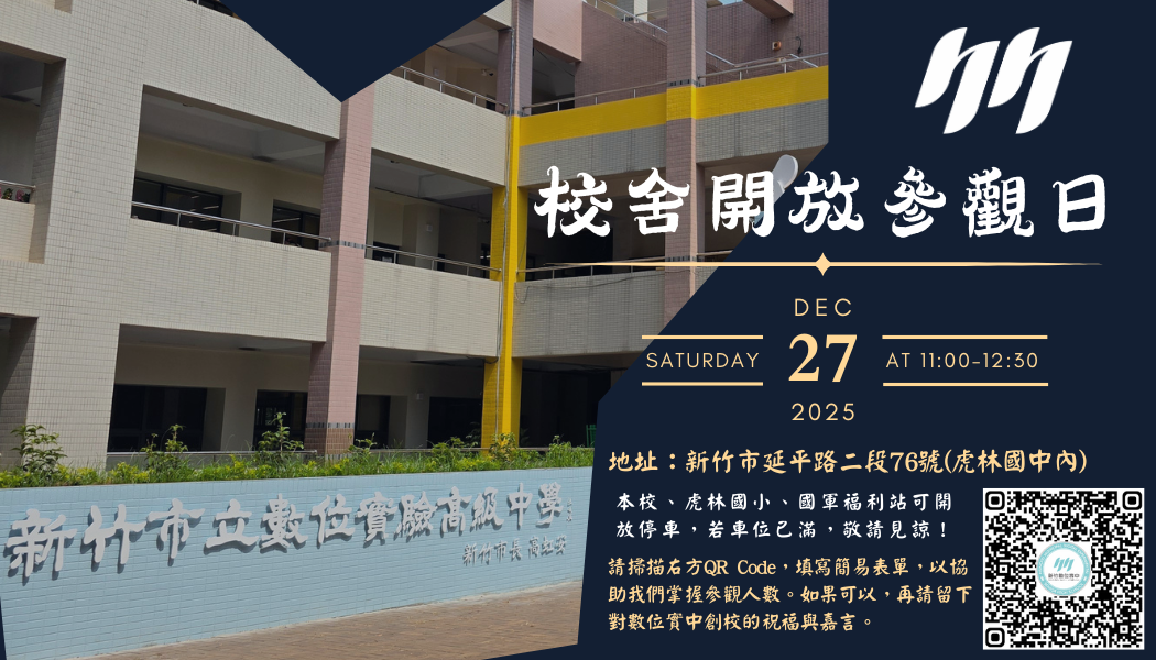 (三)活動地點: 新竹市立數位實驗高中(新竹市香山區延平路二段76號(虎林國中內))。
