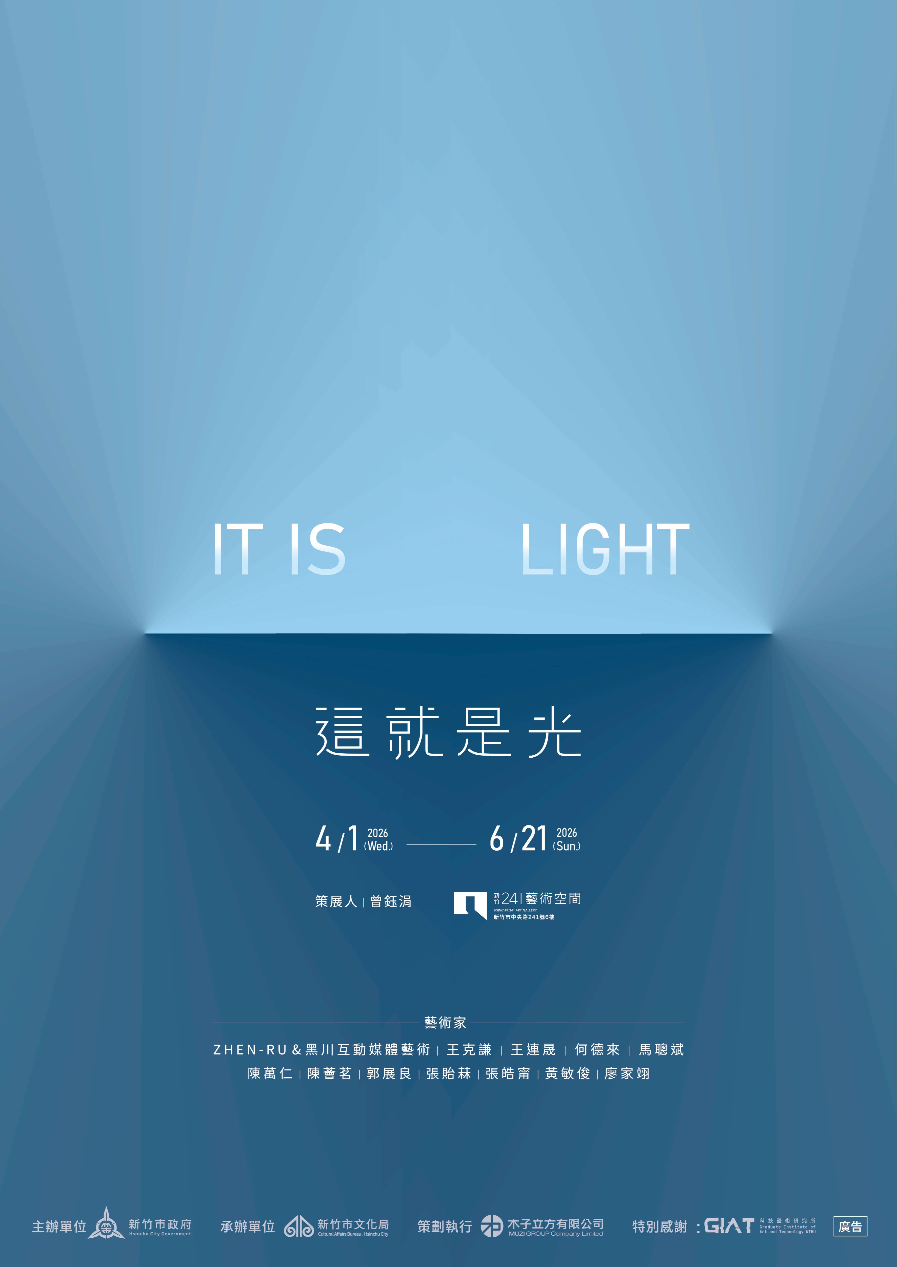 | 二、 | 本展展期自115年4月1日(星期三)至6月21日(星期日)於新竹241藝術空間(新竹市東區中央路241號6樓)辦理,每星期一、民俗假日及選舉日休館。詳情請上「新竹241藝術空間」粉絲專頁(https://www.facebook.com/hsinchu241?locale=zh_TW)查詢。 |